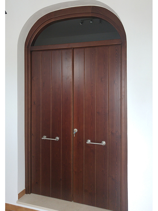 Puertas de interior y exterior de diferentes estilos realizadas con maderas macizas para proporcionar la seguridad que ello conlleva usando grandes secciones tanto en sus perfiles como en sus tableros, pudiendo ser su construcción más clásica o más actual con diseños más lisos y minimalistas.